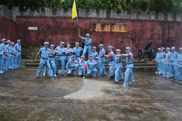 經(jīng)過一路爬涉,我們終于到達(dá)了紅七軍廣場。廣場足有兩個(gè)球場寬大,廣場的背景是一幅紅七軍的巨型浮雕,“鷹揚(yáng)關(guān)”三個(gè)大字蒼勁有力赫然其中,兩門古炮架設(shè)兩旁蔚為壯觀。據(jù)教官介紹,這里就是湘、桂、粵三省交界處,號(hào)稱“一腳踏三省”的地方。遙想當(dāng)年,紅七軍就是在這里集結(jié)從廣西進(jìn)入廣東連山。