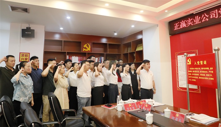 發(fā)布時(shí)間:2021-07-02 作者:圖/何志華 文/何莎莎 來源:本站原創(chuàng) 審核:鄧永劍為加強(qiáng)組織建設(shè),深入開展黨史學(xué)習(xí)教育,7月1日,正贏實(shí)業(yè)公司黨支部開展“百年風(fēng)華譜新篇,紅色精神永傳承”主題黨日活動(dòng),舉行新發(fā)展黨員入黨宣誓儀式,教育引導(dǎo)黨員干部堅(jiān)定理想信念、奮力爭(zhēng)先創(chuàng)優(yōu)。黨支部副書記、總經(jīng)理聶茂良主持會(huì)議。公司黨員、職工共三十多人參加會(huì)議。