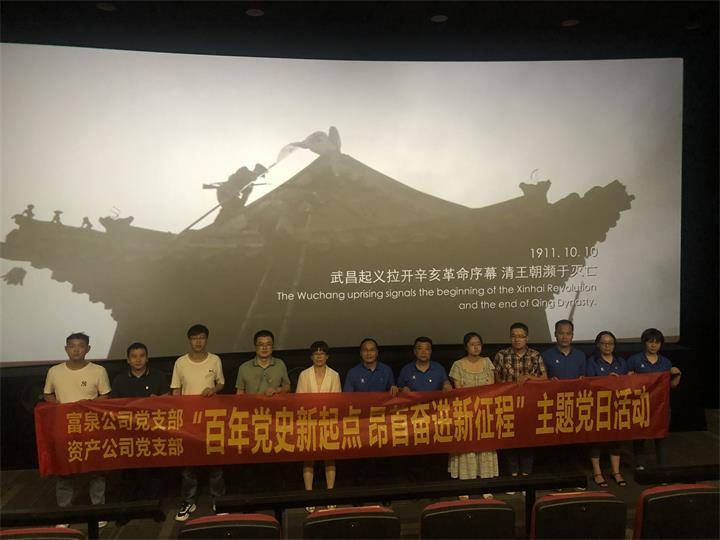 觀展結(jié)束后,為進一步引導(dǎo)黨員干部重溫黨史、傳承精神、洗滌初心、勇?lián)姑?,以更加奮發(fā)有為的精神狀態(tài)履行為民服務(wù)的初心,擔負起新時代職責使命。富泉公司黨支部、資產(chǎn)公司黨支部全體黨員一同走進電影院,觀看了紅色電影《1921》。該影片以時代“橫截面”視角切入,聚焦1921年前后的故事,全景式重現(xiàn)了百年前波瀾壯闊、開天辟地的歷史時刻,講述了一群來自五湖四海平均年齡僅28歲的熱血青年們,突破國際各股復(fù)雜勢力的監(jiān)控和追蹤,聚集上海召開中國共產(chǎn)黨第一次代表大會,見證了中國共產(chǎn)黨成立的歷史故事。這次觀影是一次令思想靈魂經(jīng)受洗禮的生動黨史學(xué)習(xí)教育課,對于黨員體悟建黨的艱辛歷程,堅定理想信念,重溫入黨初心有著極為重要的意義。