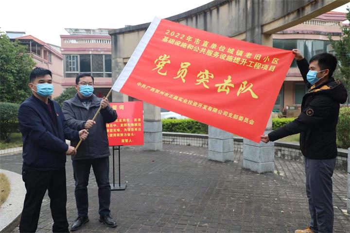 隨后,活動(dòng)人員來到了賀州市檢察院生活小區(qū),該小區(qū)是正贏實(shí)業(yè)公司負(fù)責(zé)實(shí)施的賀州市2022年市直單位城鎮(zhèn)老舊小區(qū)基礎(chǔ)設(shè)施和公共服務(wù)設(shè)施提升工程項(xiàng)目其中一個(gè)老舊小區(qū)。在老舊小區(qū)現(xiàn)場(chǎng),支部開展了黨員對(duì)標(biāo)承諾活動(dòng),并成立了2022年市直單位老舊小區(qū)基礎(chǔ)設(shè)施和公共服務(wù)設(shè)施提升工程項(xiàng)目“黨員突擊隊(duì)”。柳國(guó)忠強(qiáng)調(diào),全體黨員要通過向身邊的優(yōu)秀黨員學(xué)習(xí)并從中確立標(biāo)桿和榜樣,在項(xiàng)目建設(shè)中以黨員的標(biāo)準(zhǔn)嚴(yán)格要求自己,帶頭攻堅(jiān)克難,沖鋒在項(xiàng)目一線,更好的為人民群眾服務(wù)。