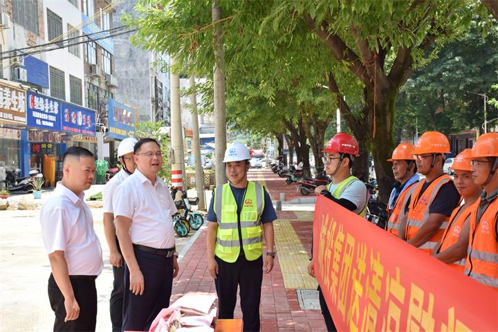 連日來,賀州市頻繁發(fā)布高溫預(yù)警,熱浪襲人。7月27日,為傳達(dá)城投集團(tuán)黨委的關(guān)心關(guān)愛,集團(tuán)黨委書記、董事長黃俊到賀州市城市品質(zhì)提升改造項(xiàng)目(城區(qū)道路白改黑)開展送清涼慰問活動,為高溫下堅守一線的勞動者送上西瓜、涼茶等防暑降溫慰問品。