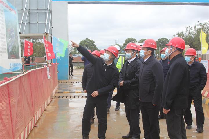 11月30日上午,自治區(qū)副主席許顯輝率調(diào)研組到賀州市旺高工業(yè)區(qū)水廠及管網(wǎng)擴建工程項目現(xiàn)場開展政策性開發(fā)性金融工具(基金)已簽約投放項目建設(shè)情況調(diào)研。市委常委、副市長劉洪軍,城投集團黨委書記、董事長黃俊陪同調(diào)研。