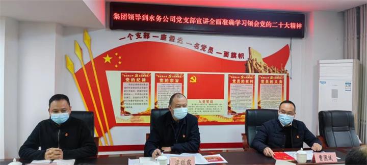 12月20日下午,集團黨委副書記、工會主席梁輝露到城投水務公司黨支部宣講黨的二十大精神。