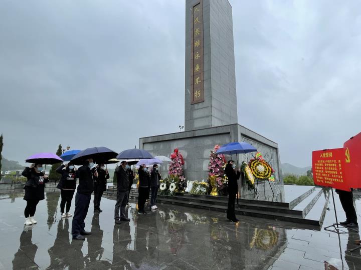 在祭掃活動(dòng)現(xiàn)場(chǎng),黨員代表抬著花圈,莊嚴(yán)走到烈士墓碑前,為英雄先烈敬獻(xiàn)花籃。全體黨員干部代表垂首默哀,向革命烈士寄托深深的哀思,向革命英烈致以崇高敬仰和深切緬懷。隨后,全體黨員一一向革命英烈獻(xiàn)上鮮花。最后,公司副總經(jīng)理羅海蘭帶領(lǐng)全體黨員重溫入黨誓詞。