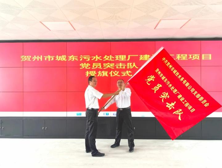 為充分發(fā)揮黨組織的戰(zhàn)斗堡壘作用和黨員先鋒模范作用,引導(dǎo)黨員干部職工在項(xiàng)目建設(shè)中走前頭、作表率、樹形象,促進(jìn)黨建與業(yè)務(wù)深度融合,11月15日,城投水務(wù)公司黨支部在賀州市城東污水處理廠舉行“賀州市城東污水處理廠建設(shè)工程項(xiàng)目黨員突擊隊(duì)”授旗儀式。城投集團(tuán)副總經(jīng)理、水務(wù)公司黨支部書記、執(zhí)行董事李羅清參加活動(dòng)并講話,水務(wù)公司黨支部全體黨員、業(yè)務(wù)骨干等23人參加活動(dòng)。