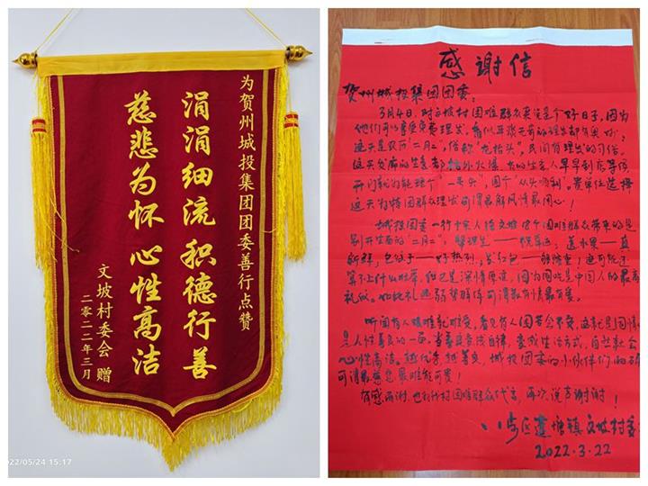 村委致謝贈(zèng)錦旗 點(diǎn)贊城投集團(tuán)團(tuán)委志愿服務(wù)2022-05-24